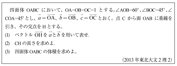 [B]四面体の体積の問題(2013年東北大文2理2)