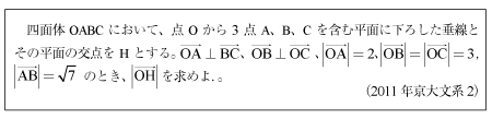 [C]四面体の高さを求める問題(2011年京大文系2)