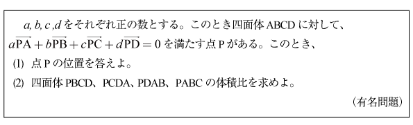 [C]四面体の中の三角錐の体積比の問題(有名問題)