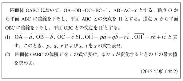 [C]四面体の体積の問題(2015年東工大2)