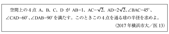 [C]四面体の外接球の半径の問題(2017年横浜市大/医13)