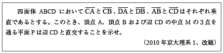 [B]四面体の断面と1辺の直交を証明する問題(2010年京大理系1)