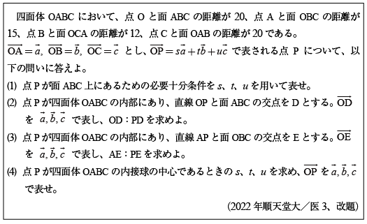 [C]四面体の体積の問題(2015年日大/医3)