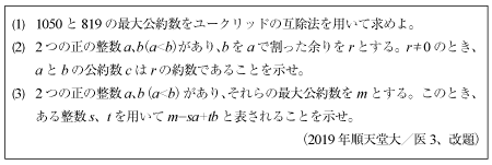 [C]ユークリッドの互除法に関する証明問題(2019年順天堂大/医3)