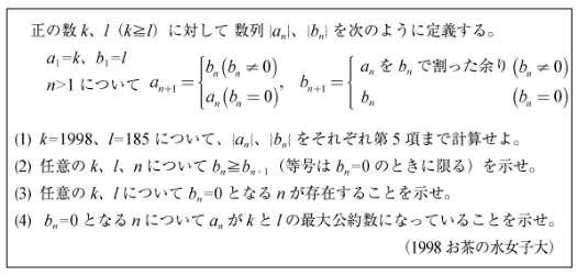 [C]ユークリッドの互除法と連立漸化式の問題(1988年茶女大理)