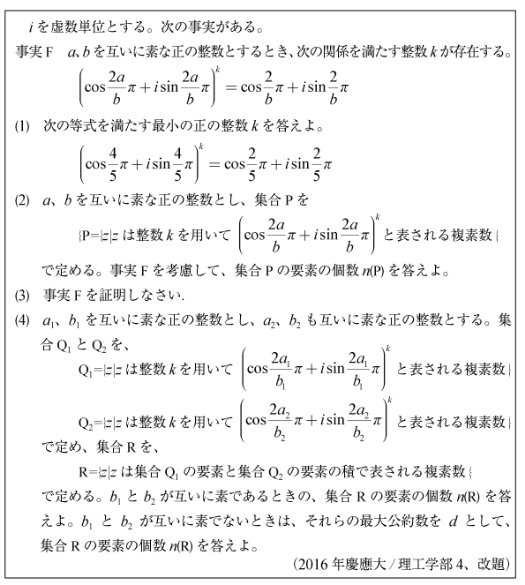 [D]複素数とユークリッド互除法の問題(2016年慶応大/理工4)