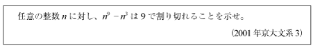 [B]3の剰余類を利用して倍数性を証明する問題(2001年京大文系3)