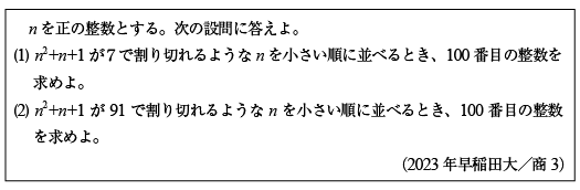 [B]91を法とする剰余類の問題(2023年早大/商3)