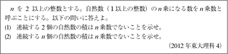 [B]「隣り合う整数は互いに素」で解く証明問題(2012年東大理科4)