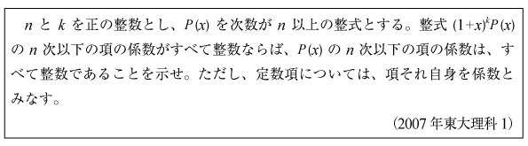 [C]整数係数n次多項式の整数性の証明問題(2007年東大理科1)