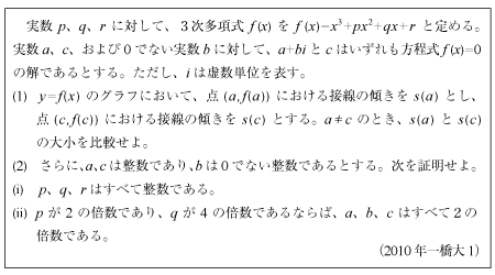 [B]整数係数3次多項式の整数性の証明問題(2010年一橋大1)