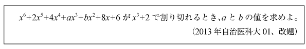 [B]6次式が3次式で割り切れるための条件の問題(2013年自治医大01)
