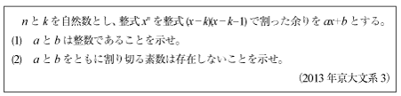 [B]「隣り合う整数は互いに素」で解く数式の問題(2013年京大文系3)