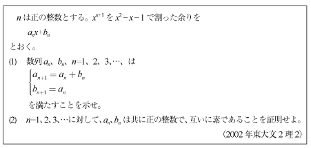[C]背理法と数学的帰納法で証明する割り算の問題(2002年東大文2理2)