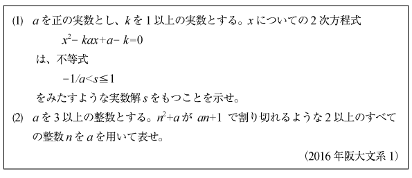 [D]不等式から入る整数問題(2016年阪大文系1)