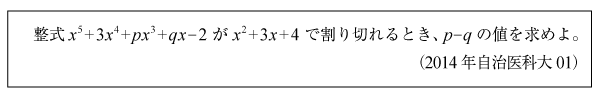 [B]5次式が2次式で割り切れるための条件の問題(2014年自治医大01)