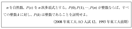 [D] n次多項式の整数性の証明問題(2008年東工大AO12)