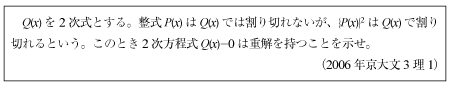 [E]3次式が2次式で割り切れる難問(2015年京大理系5)