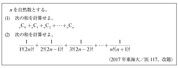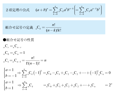 二項定理とともに、頻繁に登場する関係式を紹介します。二項定理が絡むと難易度が上がるので要注意です。難関大受験には二項定理は要注意事項です。