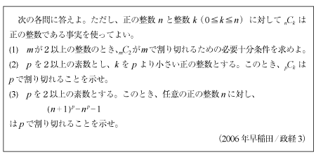 [C]二項定理にかかわる整数問題(2006年早稲田/政経3)