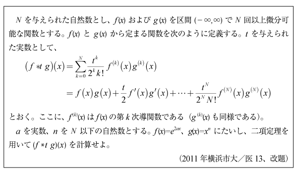 [B]高次導関数と二項定理の問題(2011年横浜市大/医13)