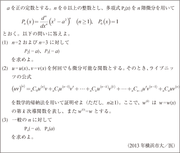 [C]高次導関数と二項係数の問題(2013年横浜市大/医2)