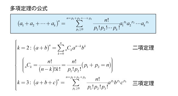 多項定理は、その全体を利用するというよりはそれぞれの係数を問う問題が多いと思います。多項定理の代わりに項数が3項の三項定理を証明します。