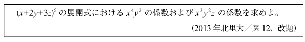 [A]多項定理の係数の問題(2013年北里大/医12)