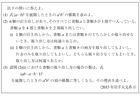 [B]多項定理と順列の問題(2013年岩手大文系1)