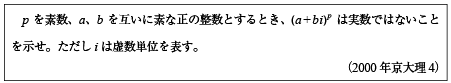 [D]複素数の素数乗が実数ではないことの証明問題(2000年京大理4)
