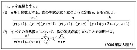 [C]部分分数分解と組み合わせ記号整理の問題(2006年阪大理系3)