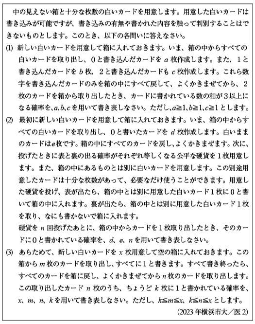 [C]二項係数を用いる確率の問題(2023年横浜市大/医2)