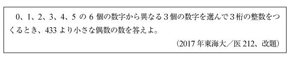 [B]指定値より小さい3桁の数を作る問題(2017年東海大/医212)