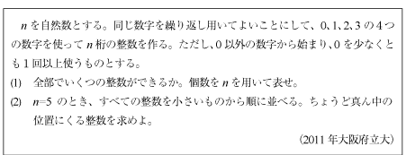 [C]かならず0を含む数字の問題(2011年大阪府立大)