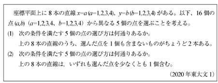 [B]16個の点の選び方の問題(2020年東大文2)