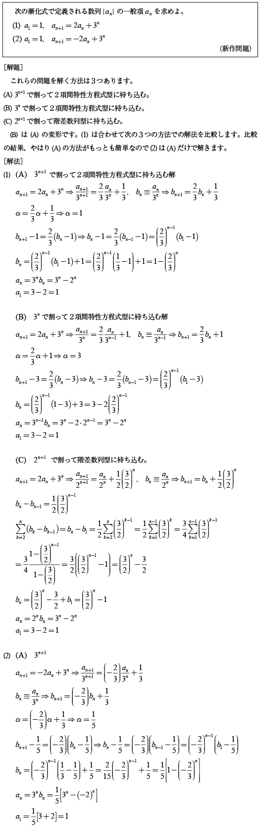 HOME > ◎漸化式 > 漸化式の項 > 指数型漸化式例題疑問点のお問い合わせやご注文などは、■御注文・お問い合わせの手順にしたがってadmin@K-Kyogoku.comへお願いします。最近はかなり頻繁に更新しているので、時々[再読み込み]を行ってください。難関大入試対策「最強の良問集成(2025年版)」提供を開始しました。こちらへ「保護されていない」って出てきたけど,大丈夫? 「保護されていない通信」