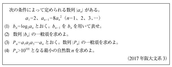 [B]対数型漸化式の問題(2017年阪大文系3)