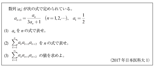 [B]3項間分数漸化式の問題(2017年昭和大/医131)