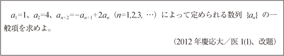 [B]隣接三項間漸化式のやさしい問題(2012年慶大/医11)