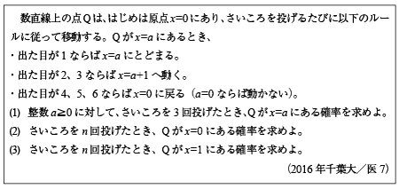 [C]特性方程式・指数型漸化式を解くゲーム確率の問題(2016年千葉大/医7)