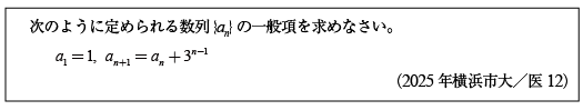 [B]べき条項がある特性方程式型二項漸化式の問題(2025年横浜市大/医12)