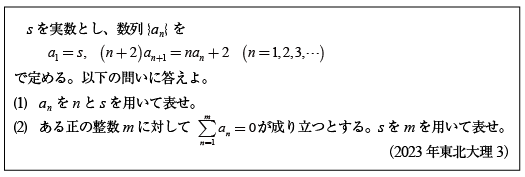 [C]部分和で初項を決める数列の問題(2023年東北大理3)