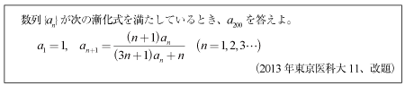 [C]分数型かつ多項式型の漸化式の問題(2013年東京医科大11)