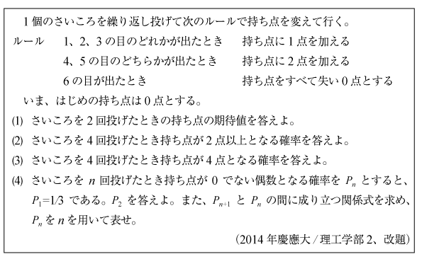 [C]単独漸化式を作って解くサイコロゲームの問題(2014年慶應大/理工2)
