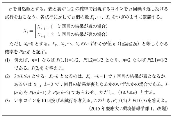[C]単独漸化式を作って解くコインゲームの問題(2015年慶應大/環境情報1)