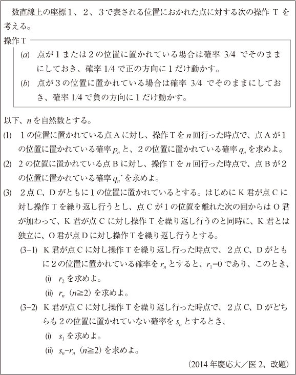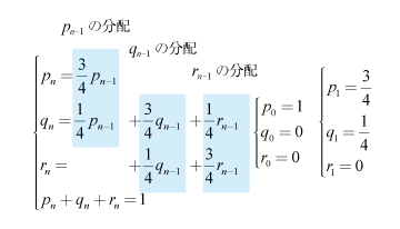 次に示すのは、比較的やさしい連立確率漸化式の問題群です。