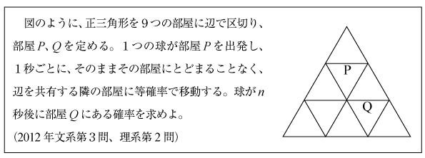[D]連立漸化式を作って解く三角形内の移動の問題(2012年東大文3理2)