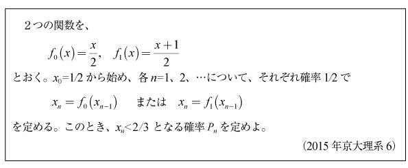 [D]連立漸化式を作って解く区間内移動の難問(2015年京大理系6)