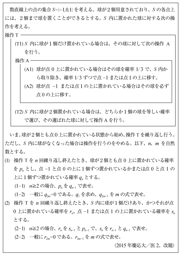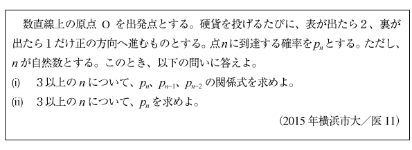 [B]単独漸化式を作って解く直線上の移動の問題(2015年横浜市大/医11)