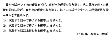 [D]板3枚を裏返す連立漸化式を解くかなり難しい問題(2004年東大文4理6)